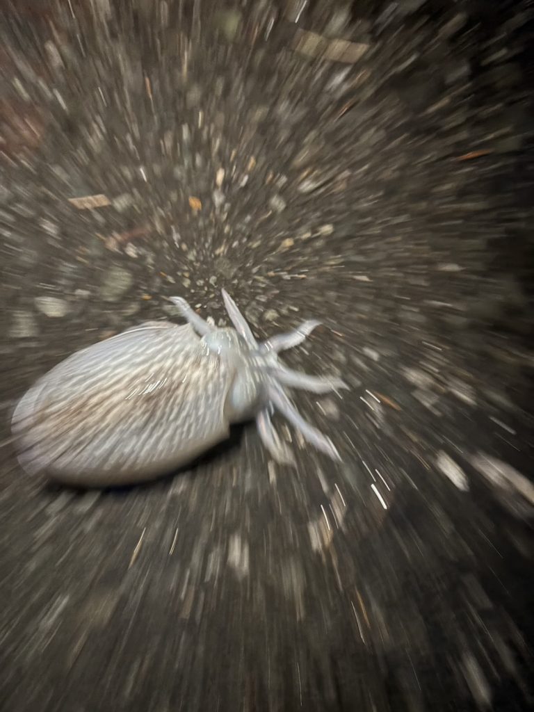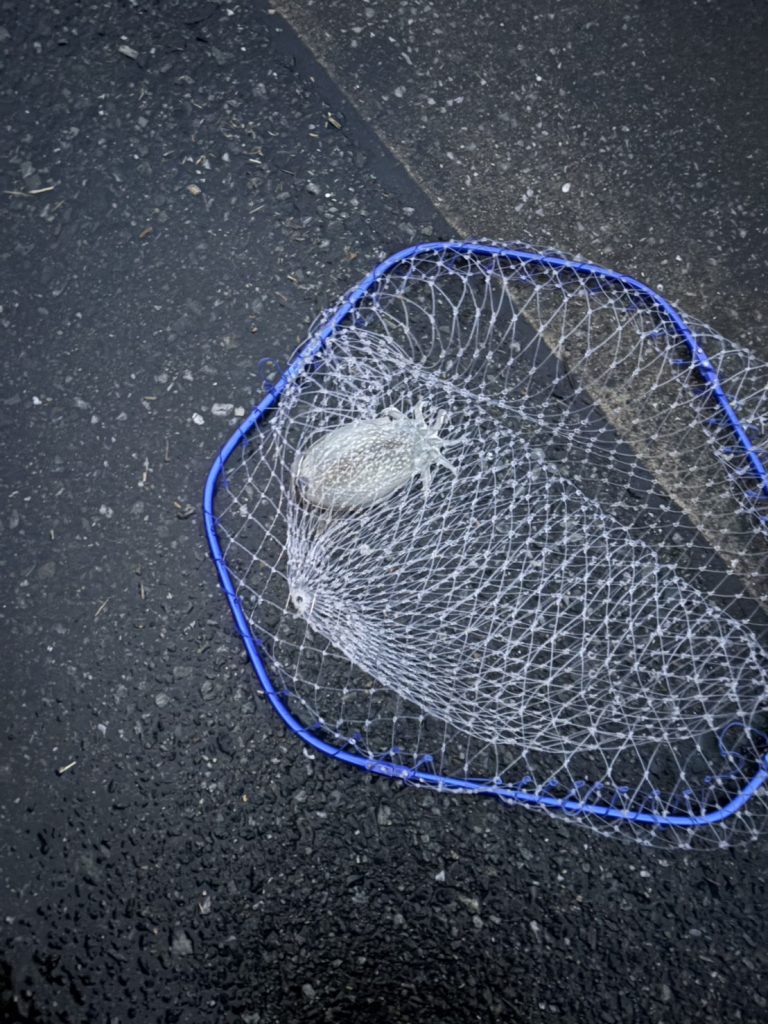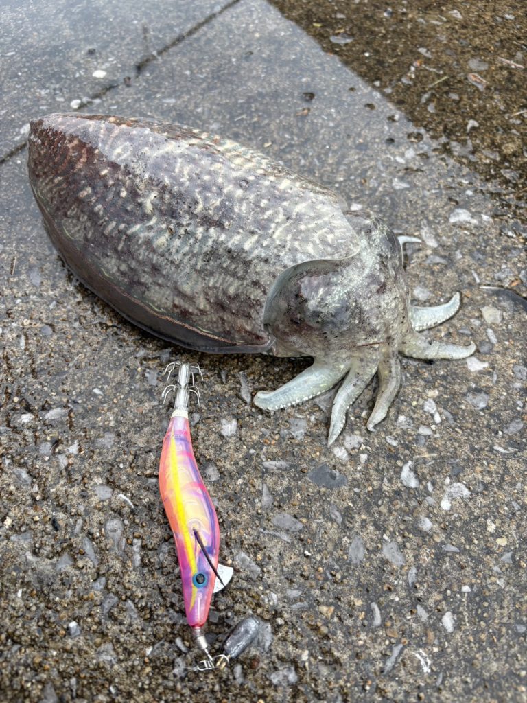 これは今まで釣れていたシリヤケイカとは違い正真正銘のコウイカ。しっかり足元にスミを吐かれました。