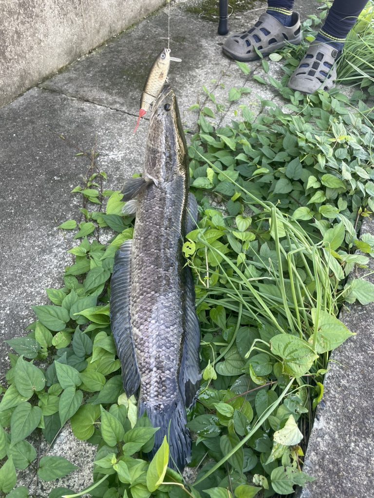 おろしたてのスイートキラー新色が雷魚に襲われました。2回目のバイトからは逃げられませんでした・・・太い・・・笑
