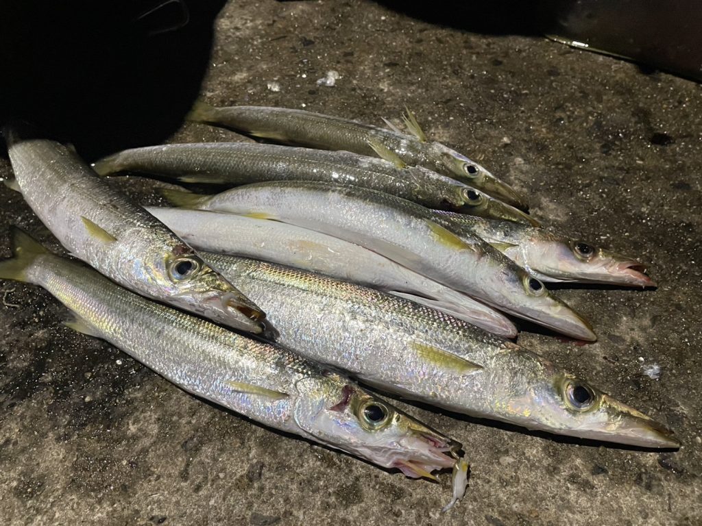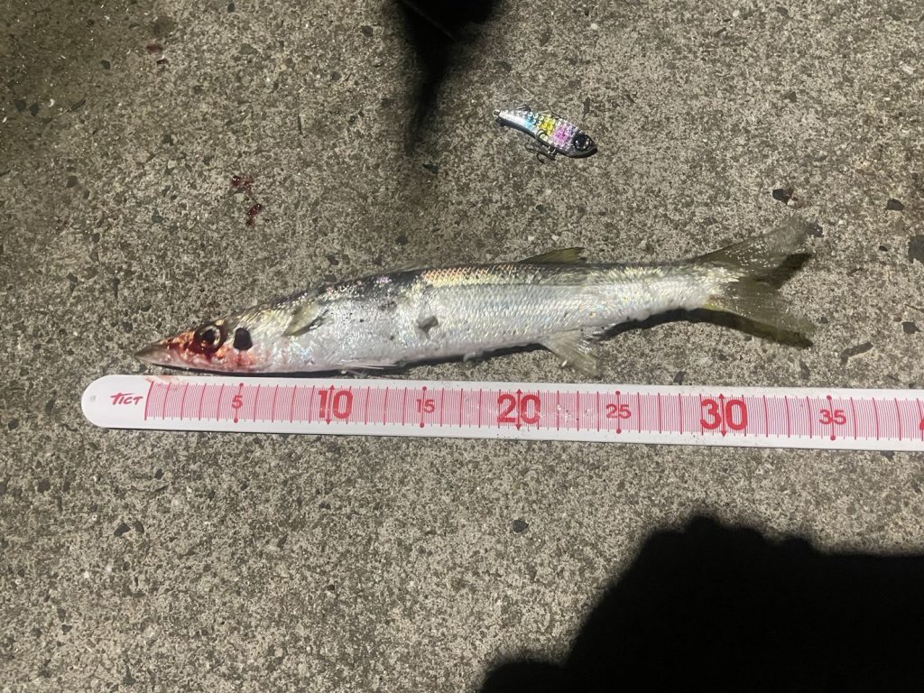 そんなこんなしていると同行者がカマスを釣ったためそこからはエギングタックルでカマス狙いに。