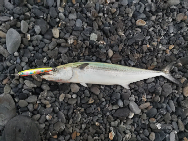 自分はスローにヒラメなどを狙っていましたが、あまりに釣れないので早巻きにしたらサゴシがきました!