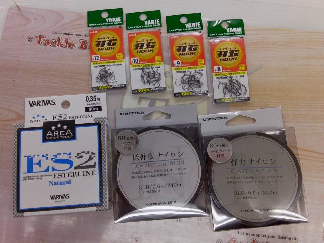 0.35号、ユニチカ 弾力ナイロン・低伸度ナイロン、ヤリエ AGフック等の消耗品も入荷しました。