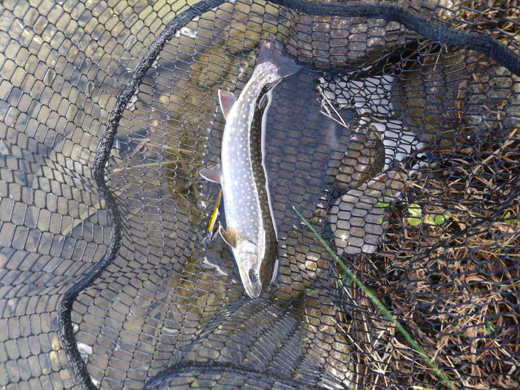 天気にも恵まれ、良い景色を背景に釣りができましたが、前々日の雨の影響か若干の濁りがあり、一日中ゴールド系が効く展開になりました。ルアーはスプーン、クランク、ミノーで釣果としましては2人で30匹オーバーでまずまず楽しめました!