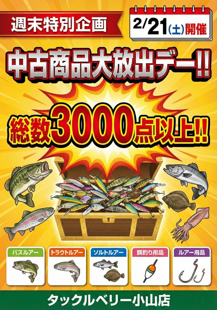 明日・明後日の残り2日間も、皆様のフィッシングライフを全力でサポートさせていただきます。 3,000点以上の圧倒的な品揃えの中から、納得の掘り出し物を見つけ出してください!