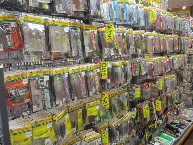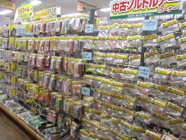 中古バス・ソルト・トラウトルアー・バスワームを中心に数百個店頭に出しました!!