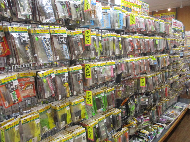 中古バス・ソルト・トラウトルアー・バスワームを中心に数百個一挙店頭出しを行いました。
