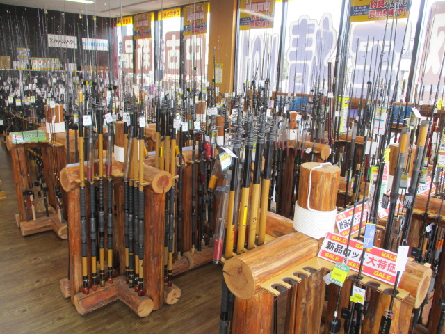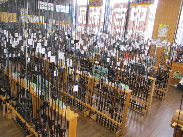 先月の買取アップデーでは多くの釣り具をお持ちいただきまして誠にありがとうございます。おかげさまで概ね店頭に出すことが出来ました。中古ロッド100本以上、リール50台以上、ルアー・ワーム・その他用品等ざっと数百点。
