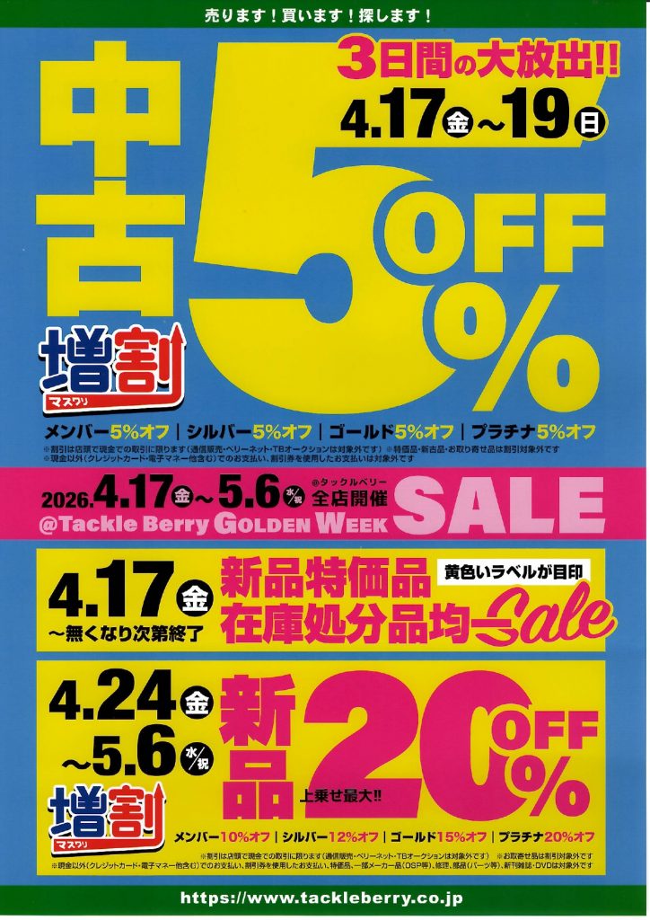 狙っていた高額ロッドやリールをお得にゲットする大チャンスですよ!!