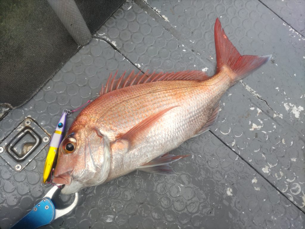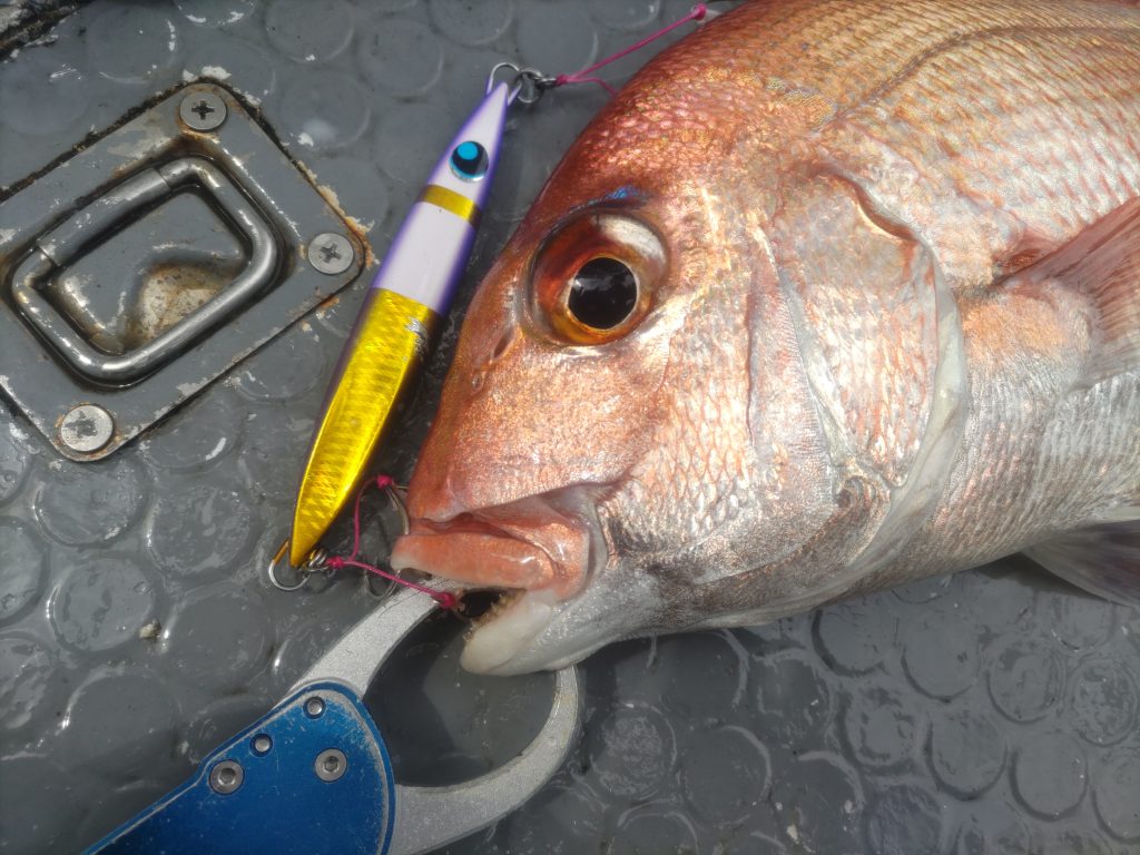 最後の最後に食べ頃サイズの真鯛をキャッチし終了ォォォ~♪ 御前崎エリアのSLJで出る度に真鯛をキャッチしていますが、好かれてるんでしょうか???