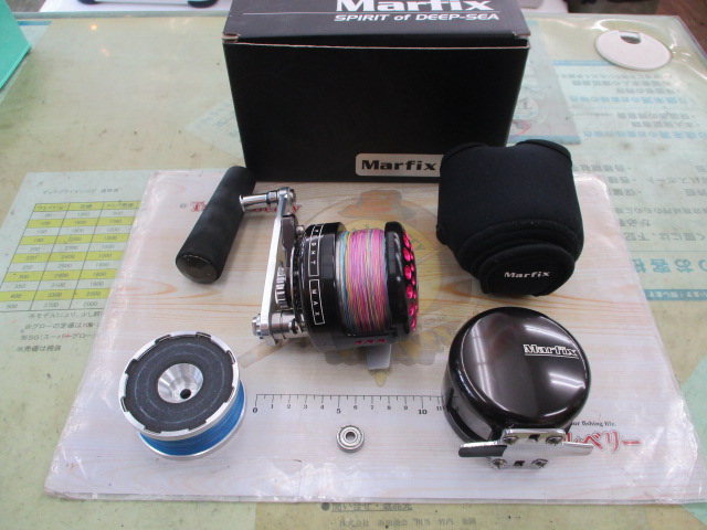 そう! ジギング界隈で国内はもちろんですが、今や海外のアングラーさん達からも熱い視線が注がれている焼津市を代表するプロショップ「アクア」の喜熊さんが監修する「TSS」のパーミングカップが換装され、替えスプールまで付いた状態で入荷♪ ちなみにカップも純正品あり…