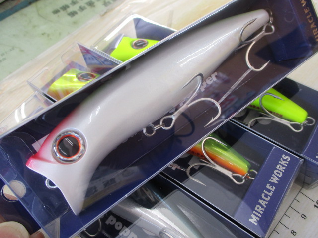 ミラクルワークス(バーンズ)のドカポップ♪ ハンマー、メケメケも制作されていますがハンドメイド時代のオリジナルを知っている&使ったことがあるワタクシ世代のアングラーから視るとインジェクションに重心移動なんかが搭載されちゃうと良いルアーは間違いないんですが「何だかなぁ~…」なんです…