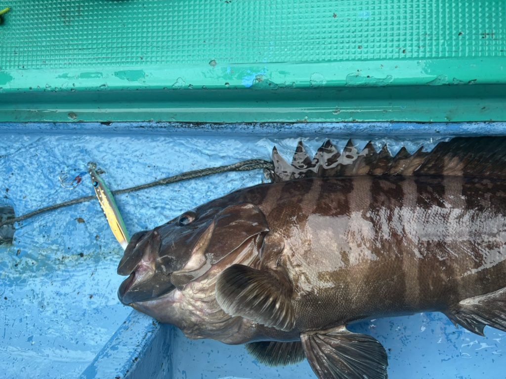 10/19(日)御前崎「恵比寿丸さん」にてウロコジグショート・240gのマスカットタルトで4kgに少し欠けるマハタを狙い通りゲット! お見事でした…