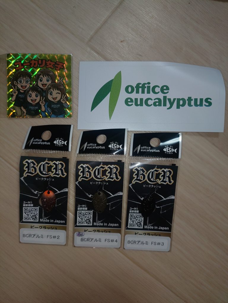 そしてオフィスユーカリブースでは先行でBCRアルミ0.4gが販売されていました。河村気になり3色購入してきました!