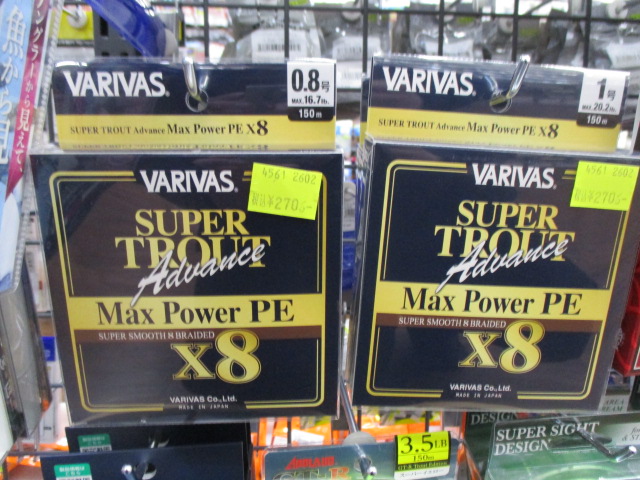 バリバスの特価のナイロンラインやPEライン入荷しています。