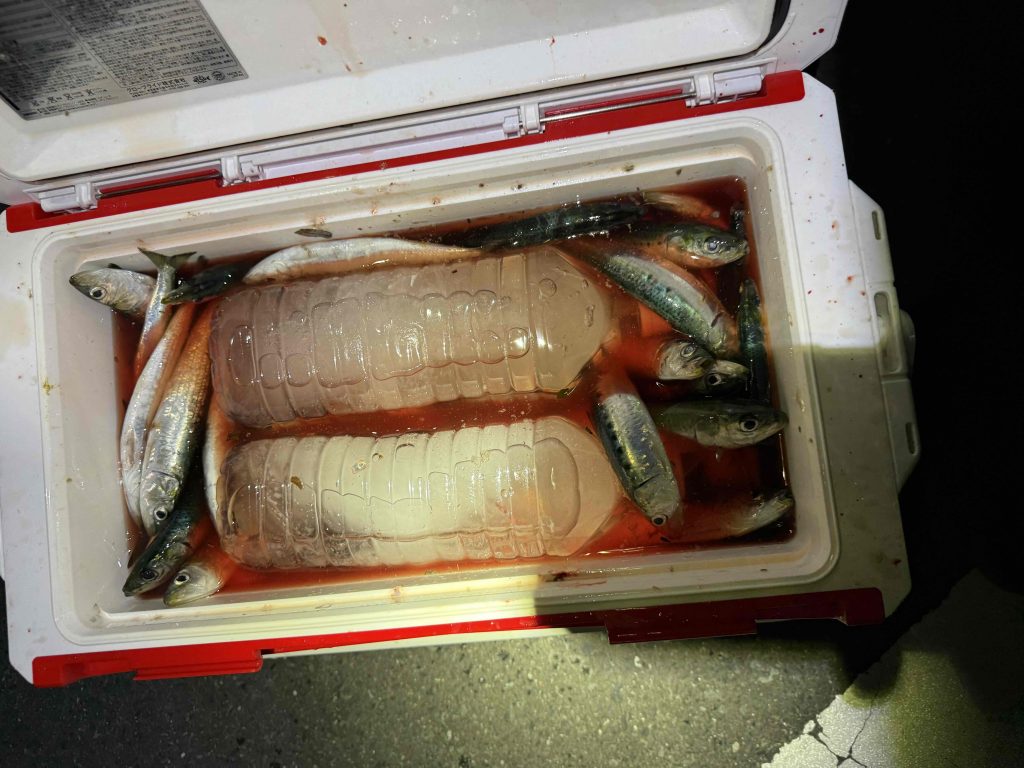 漁港に着いて水面を確認すると、一面にイワシの大群(゚Д゚;)