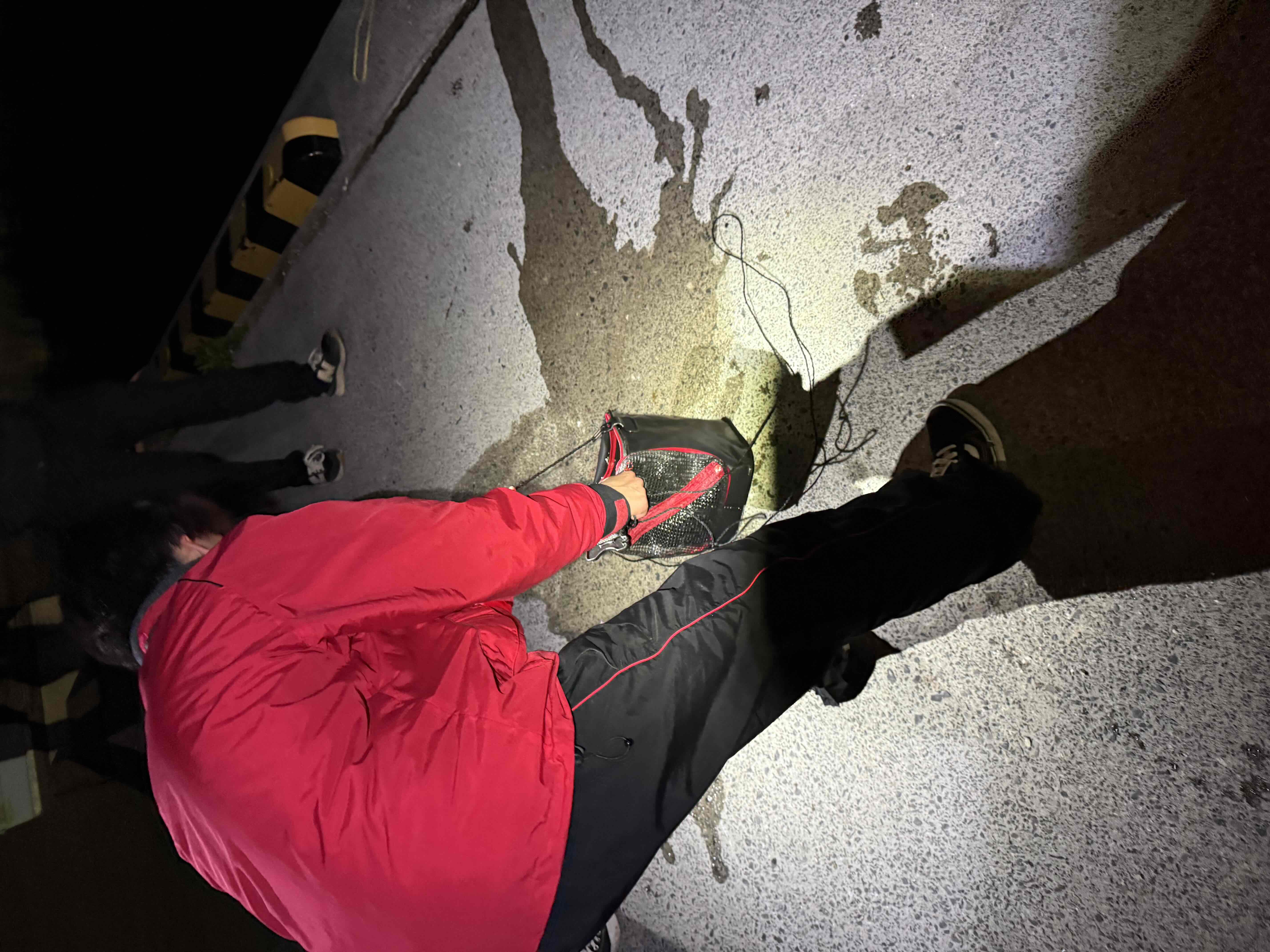 イワシは鱗が剥がれやすい魚ですので、漁港を汚してしまった場合はバケツで水を汲んでお掃除しましょう!漁港は漁師さんの仕事場でもあります。場所を汚さないように気を付けていきましょう~